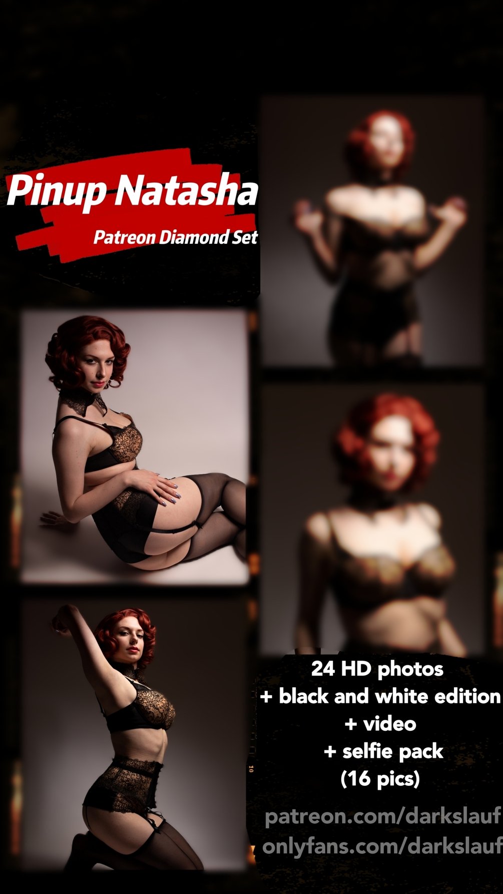 Pinup Widow: 24 HD lingerie photos + black and white edition + 16 selfies + video!